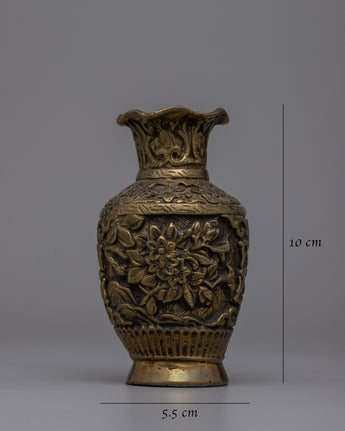 This Handcarved Flower Vase is the ideal combination of elegance and craftsmanship, elevating the beauty of your favorite blossoms and adding a touch of elegance to your decor. The vase has a one-of-a-kind design that combines creativity and usefulness, and it is made of brass. Its small size of 10 cm in height and 5.5 cm in width makes it an excellent choice for any room, including the living room, workplace, or bedroom, instantly boosting the mood with a lovely, timeless appeal which is perfect for enhancing the beauty of any room.