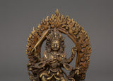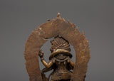 This brass Mahakala statue is gorgeous art and a powerful spiritual talisman. It prevents evil and brings protection, prosperity, and spiritual development. This Mahakala statue is essential for anyone seeking to deepen their spiritual journey, whether they practice Vajrayana Buddhism or desire a powerful spiritual presence in their home. Its rich design and powerful energy will enhance your meditation practice while providing a calm and safe space for your sacred area.