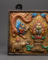 Handcrafted Brass Tibetan Wall Hanging | Tibetan Decor with Elephants & Dragon