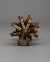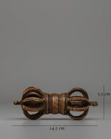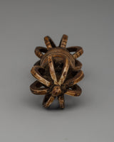 This finely handcrafted Vajra measures 5.5 cm in height and 14.5 cm in width, and weighs 0.094 kg. It is ideal for meditation, ceremonies, or as an inspiring piece of decor. Its symmetrical design and rich detailing showcase the artisan's skill while also representing spiritual depth. Include this Dorje in your holy area to provide protection, balance, and enlightenment.
