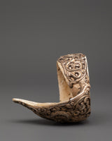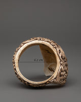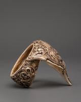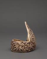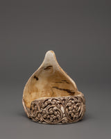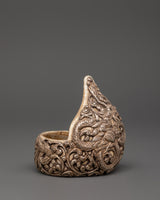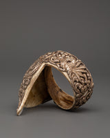 The Handcrafted Conch Shell & Pure Silver Bangle is a distinctive and attractive traditional artisan jewelry combining natural beauty and spiritual significance. This masterfully created bracelet has a diameter of 6.2 cm and is made of genuine conch shell, representing purity and good fortune in Hindu and Buddhist traditions. The conch shell is enclosed in pure silver, which adds strength, refinement, and a sense of divine energy. The delicate silverwork, precisely created by expert artisans, adds to the bangle's aesthetic appeal, resulting in a perfect marriage of nature, culture, and craftsmanship.