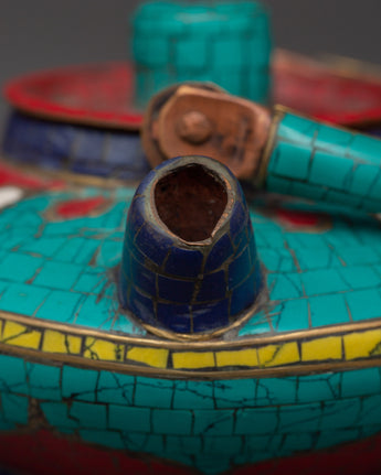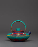 Handcrafted Copper Teapot | Turquoise, Coral & Lapis Inlaid Tibetan Artwork