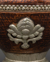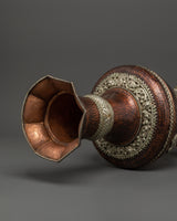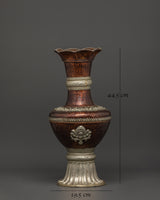 This handcrafted copper and white metal flower vase set will enhance the elegance and attractiveness of your home or office. These vases, measuring 44.5 cm in height and 19.5 cm in width, are beautifully crafted with delicate flower patterns at their center, making them ideal accent pieces for any modern or rustic décor. The combination of copper and white metal creates a magnificent contrast that highlights the beauty of fresh flowers, adding sophistication and classic charm to your home.