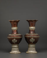 Handcrafted Copper & White Metal Flower Vase Set | Accent Piece Decor