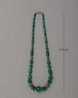 This 23.5cm handcrafted gemstone necklace, expertly made and inspired by old traditions, features lovely artificial gemstones coupled with delicate white metal accents. With a weight of just 0.060 kg, it is lightweight and compact, making it perfect for special events and daily use. The gemstones are not only stunning, but they also have deep spiritual significance and are often associated with healing and inner peace. This necklace is an excellent addition to your collection because it combines beauty and spiritual significance.