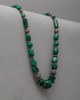 Handcrafted Gemstone Necklace with White Metal Accents | Traditional Himalayan Design