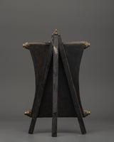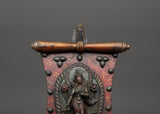 Green Tara stands in a tranquil but attentive position, her right hand extended in a sign of offering and her left holding a lotus flower, representing purity and independence. The item is encircled by elaborate, hand-carved details and scattered gold highlights, creating an aged, sacred look. Lightweight and 28 cm tall, it's perfect for wall hanging or tabletop display, infusing your house with blessings of protection, quick action, and inner serenity.
