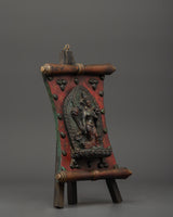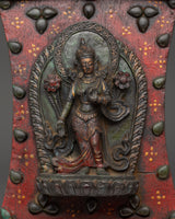 This beautifully handcrafted Green Tara Wooden Wall Art brings heavenly protection, compassion, and feminine energy into your environment. This sacred panel is made of wood and hand-painted with rich acrylic colors. It depicts the graceful figure of Green Tara, one of Tibetan Buddhism's most cherished deities. The panel's bending shape and integrated relief design give it a shrine-like look, making it an impressive spiritual focal point for any altar or meditation space.