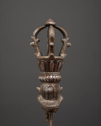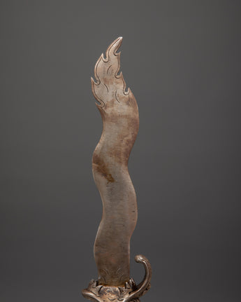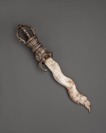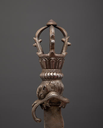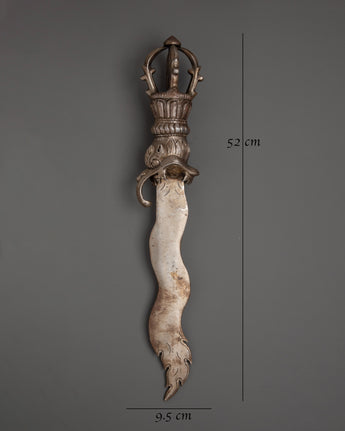 This Handcrafted Iron Sword is a magnificent example of history and craftsmanship, ideal for enhancing your altar decor, spiritual practices, or medieval collection. This ritual sword, which measures 52 cm in height and 9.5 cm in width, is intricately detailed, featuring a half Vajra at the base that symbolizes the indestructible essence of truth and spiritual strength. Whether employed in spiritual ceremonies, as part of a decorative display, or as a unique accessory for your home decor, this sword is both symbolic and practical, reflecting the rich traditions of Tibetan and Himalayan cultures.