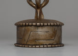 Ritual tools are vital to Tibetan Vajrayana Buddhism practice and are meant to dispel misconceptions that obstruct enlightenment. The phurba (Sanskrit: Kila) blade seen here was created to symbolically swallow the three poisons that obstruct spiritual progress: ignorance, greed, and illusion. The Phurba is the physical manifestation of the Vajrakila Buddha, who has the ability to destroy all evil on the earth. Its ceremonial usage is first recorded in the Vajrakilaya Tantra, an eighth-century or older Vajrayana work.