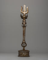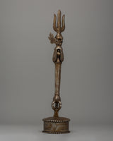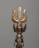 The elaborately crafted skull pattern at the trident's base enhances the artifact's spiritual depth by symbolizing the transcending of individuality. This renowned Trishul is made of iron and is ideal for ceremonial ceremonies, meditation areas, and temple altars. Its finish gives it an air of authenticity, making it a beautiful item for practitioners and collectors.