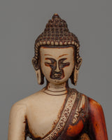 Bhaisajyaguru, or the Medicine Buddha, represents external and spiritual healing. He is shown carrying a medicine basin and a myrobalan plant, symbolizing his duty as a heavenly healer. This statue depicts his tranquil appearance and exquisite robes, demonstrating expert artisans' workmanship and spiritual devotion. This statue is ideal for individuals looking for a calming presence in their area. It promotes awareness and spiritual well-being.