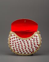 The combination of pearls and coral produces an impressive contrast, and the compact size makes it ideal for transporting your essentials. The interior is lined with rich red fabric, creating an elegant environment. This boho clutch is more than simply a bag; it's a statement item that combines traditional and modern styling.