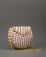 Handcrafted Pearl & Coral Side Bag | Decorative Bag