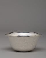 These bowls, made of high-quality silver, are lightweight but sturdy, weighing only 0.538kg (0.074kg each). The meticulous craftsmanship exemplifies traditional Himalayan artistry, guaranteeing that each piece is both visually appealing and spiritually meaningful. Use them to decorate your Buddhist shrine or meditation area, where their tranquil and exquisite style will complement your rituals and sacred practices.