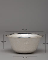 Add a touch of sacred elegance to your spiritual rituals with this set of seven handcrafted pure silver offering bowls. Each bowl is 4.5cm tall, 9.2cm in diameter, and 3.5cm deep, making it suitable for holding offerings like as water, flowers, incense, or other symbolic things. These offering bowls are crucial for expressing devotion and respect to the divine while also establishing a spiritual connection during ceremonies or meditations.
