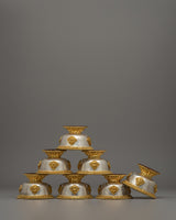 The bowls' beauty is enhanced by delicate gold-plated decorations, which symbolize prosperity and dedication. Their overall weight of 1.37kg provides stability and longevity, and the craftsmanship is traditional Tibetan. These offering bowls are more than just ritual artifacts; they operate as a way to connect with the divine, instilling tranquility and reverence in your spiritual activities.