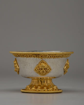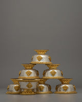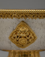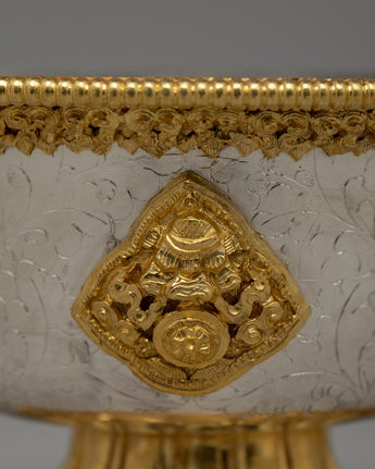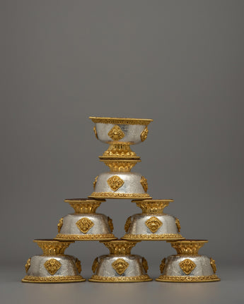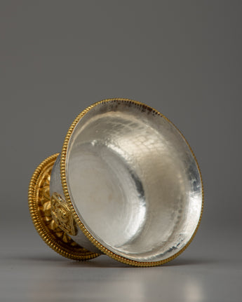 Handcrafted Silver Body and Gold-Plated Offering Bowls | Sacred Buddhist Decor Item