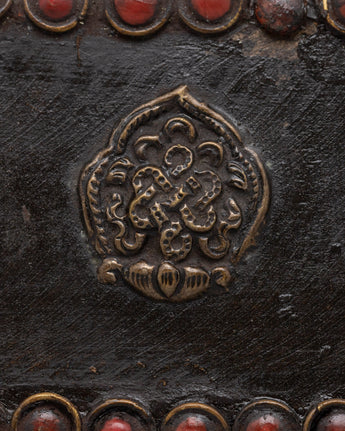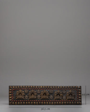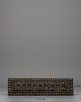 This gorgeous handcrafted Tibetan book cover is intended to protect sacred writings and enhance the ambiance of any spiritual place. This book cover, measuring 9.5cm in height and 36.5cm in width, is crafted of a Wooden Body with a delicate brass Body. The design features traditional Tibetan patterns representing reverence, protection, and spiritual blessings.