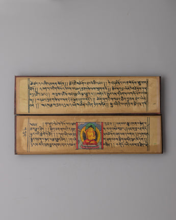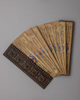This book cover is ideal for altar areas, meditation rooms, or as a rare decorative object, reflecting the beauty and depth of Buddhist art. Whether used to contain sacred documents or as an exquisite addition to your spiritual collection, it is both significant and utilitarian. It's the perfect gift for Buddhists or collectors of Tibetan antiquities because it's lightweight and durable. Bring the richness of Himalayan culture and spirituality into your house with this magnificent handcrafted book cover.