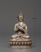 Handcrafted Tibetan Dharma Chakra Mudra Vairocana Buddha - Silver-Plated Copper Statue