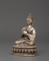This Tibetan Buddha statue is more than simply a decorative piece; it is a spiritual tool that promotes wisdom, enlightenment, and inner serenity. It represents traditional Tibetan creativity and devotion, having been meticulously made by Nepalese artisans. The silver finish gives it a celestial radiance, making it stand out as a focal point in your sacred altar, yoga studio, or tranquil home sanctuary. This statue is an ideal gift for spiritual practitioners, collectors, or anybody drawn to the Buddha's teachings. It represents the eternal light of understanding.