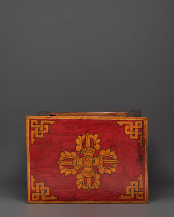 This Handcrafted Tibetan wooden cabinet is a gorgeous piece of craftsmanship that will enhance your home decor with its delicate hand-carving and brilliant acrylic color accents. This cabinet's most striking feature is the captivating painting of Snow Lions, which are respected as guardians in Tibetan culture and represent strength, protection, and courage. Standing 58.5 cm tall, 45.5 cm wide, and 33 cm wide on each side, this cabinet commands attention in any room. Its elaborate design makes it an ideal spiritual décor accent item for adding ambiance to your living room, meditation room, or any other space where you want to bring positive energy and protection into your home.