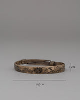 This handcrafted white metal bracelet is the ideal combination of style and cultural importance to add a touch of elegance and tradition to your jewelry collection. This lightweight, practical bangle, which measures 1 cm in height and 20.5 cm in circumference, is made for comfort and adaptability. It is a significant item for spiritual attire or daily elegance due to its elaborate carvings, which showcase classic themes and Tibetan workmanship.