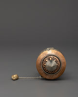 With its well-balanced body and smooth timber handle, this prayer wheel is ideal for meditative walking, daily rituals, and mantra recitation. It weighs only 0.054 kg. With each turn, the weighted chain and top finial promote fluid spinning, believed to purify one's karma and emit blessings. This sculpture combines genuine Himalayan artistry with spiritual practicality, making it suitable for both practitioners and collectors.