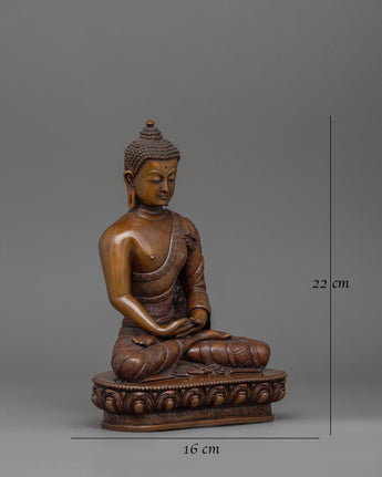 This Handmade Copper Statue of Amitabha Buddha stands at an 8.7” (22cm) in height with a base width of 6.3” (16cm). Crafted from an oxidized copper body, giving it a radiant finish. Crafted by expert artisans, this item symbolizes the rich traditions of Himalayan Buddhism, making it an important addition to altars, meditation places, or holy collections.