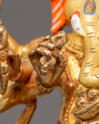 In addition to its spiritual value, the Divine Statue of Lord Ganesh is a beautiful and significant ornament. Its striking visual focal point is created by its rich gold-plated surface and vivid acrylic coloring, and its presence creates an aura of blessings and heavenly energy. This statue serves as a continual reminder of kindness, safety, and the value of conquering challenges with dignity and tenacity, whether it is placed in a private or public setting.