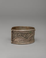 Experience classic craftsmanship with this gorgeous handmade bracelet made of filigree. This item elevates any look with its elaborate filigree patterns and tribal-inspired accents. It is the ideal accessory for everyday use or special occasions due to its bohemian appeal and lightweight design. An appropriate fitting is ensured for wrists up to 18.5 cm in circumference through to the adjustable construction.
