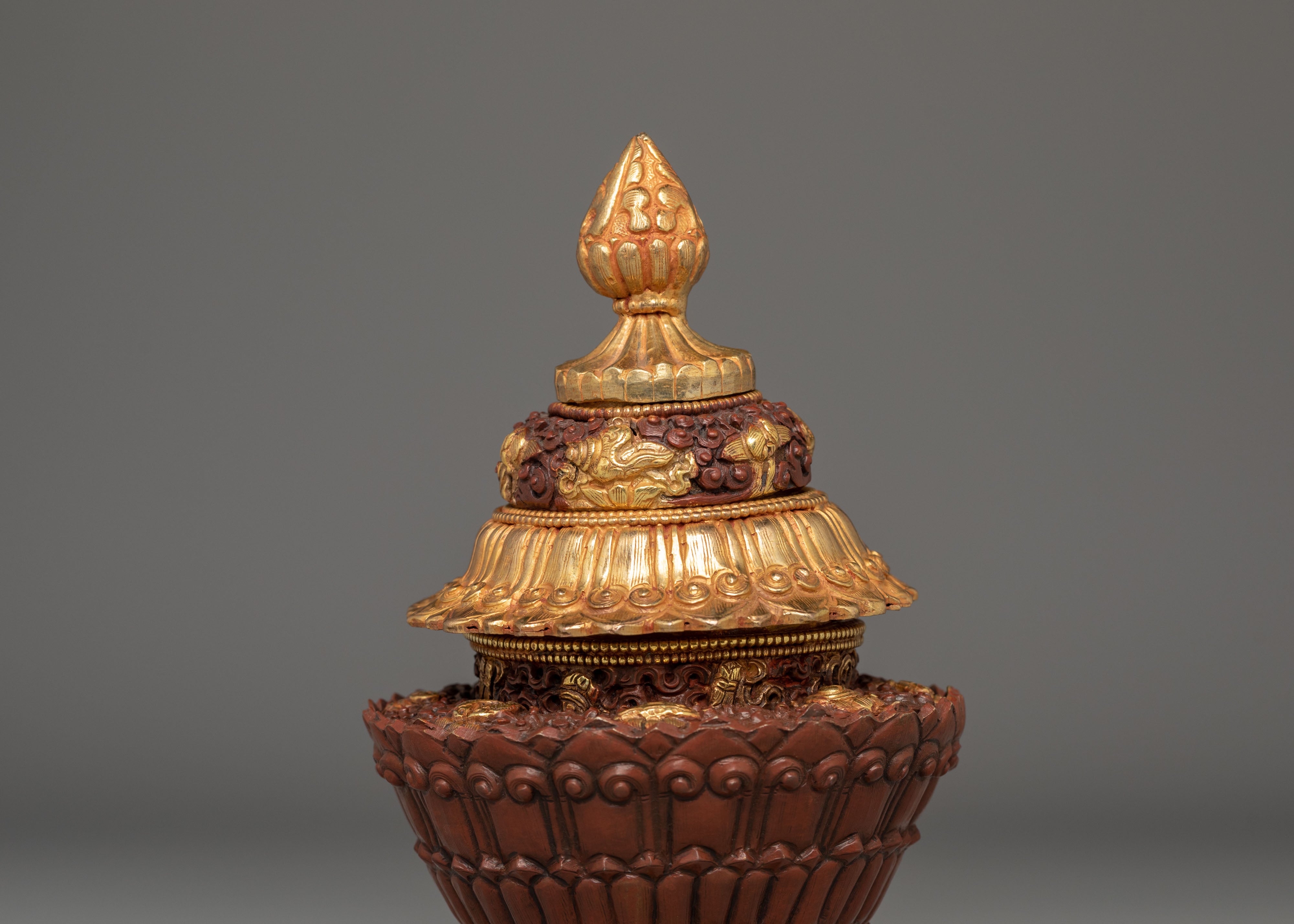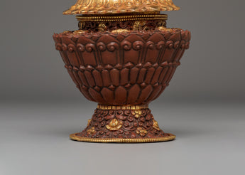 Having the Himalayan Ritual Rice Pot in your home provides both spiritual importance and visual appeal. As a sign of purification, it aids in the focus of energy during ritual practices, making it a useful tool in ceremonies that include offerings, particularly rice, to purify and bless. The gold-plated finish and exquisite carvings lend a sacred element to your meditation or altar setting, fostering spiritual growth. In addition, its traditional design and cultural significance make it a superb ornamental object, providing a sense of calm, abundance, and harmony into any space. This pot, whether used ceremonially or as a meaningful decor item, adds to the spiritual ambiance in your home.