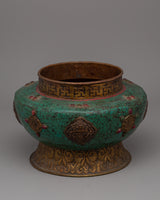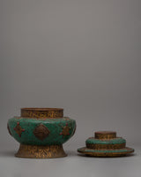 Handmade Tibetan Rice Pot | Dhupur Ritual Artifact with Turquoise Stone Details