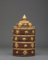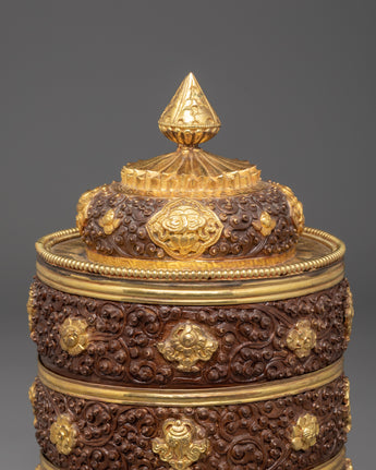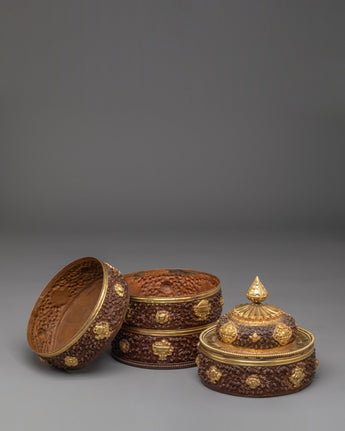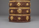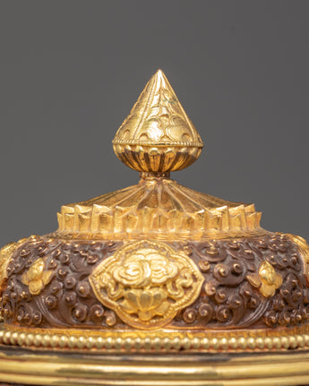 This Handmade Traditional Dhupur Rice Pot is not only a stunning decorative item but also a reflection of Indian culture and artistry. It serves as a beautiful way to bring a touch of tradition into your home. The gold-plated details and finely carved designs make it perfect for those looking to add a unique touch to their collection or space. Ideal for display, gifting, or use in a traditional setting, this rice pot is a true testament to the skill and artistry of its creators.
