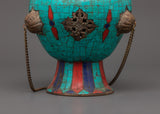 Buddhist offerings and purification ceremonies require this censer owing to its exquisite craftsmanship, which is a reflection of previous Himalayan artistry. Easy handling is made attainable by the hanging chain design, ensuring even incense smoke distribution and a peaceful atmosphere. Focus, mindfulness, and energy purification are all improved by this spiritually enhanced burner, which can be used for personal meditation, temple use, or as a meaningful present.