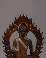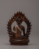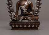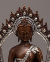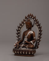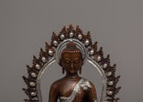 The silver polish enhances the copper body, creating a graceful and luminous finish that contributes to the piece's sacred and healing energy. Its small size makes it an ideal choice for personal altars, healing spaces, or meditation areas, where it can represent hope, healing, and compassion. The Medicine Buddha's detailed craftsmanship and serene expression provide a calming presence that promotes spiritual growth and well-being.