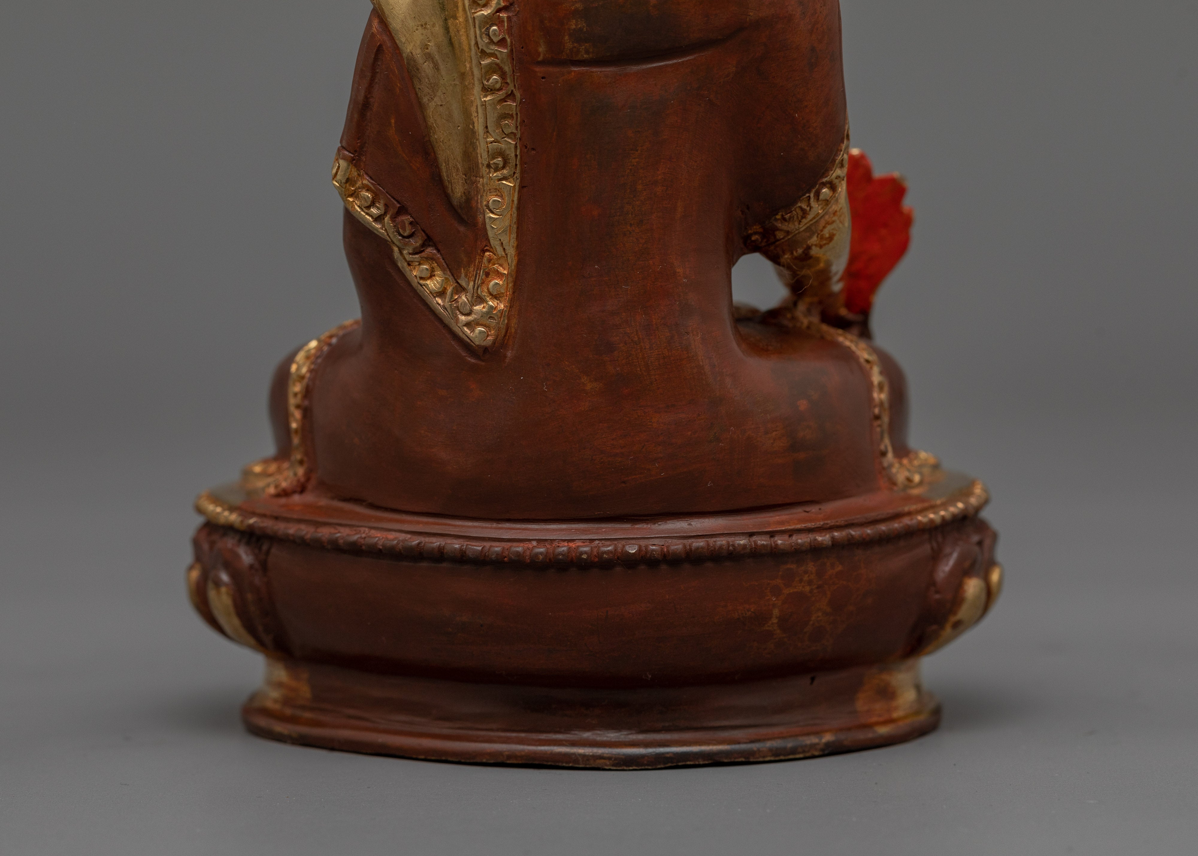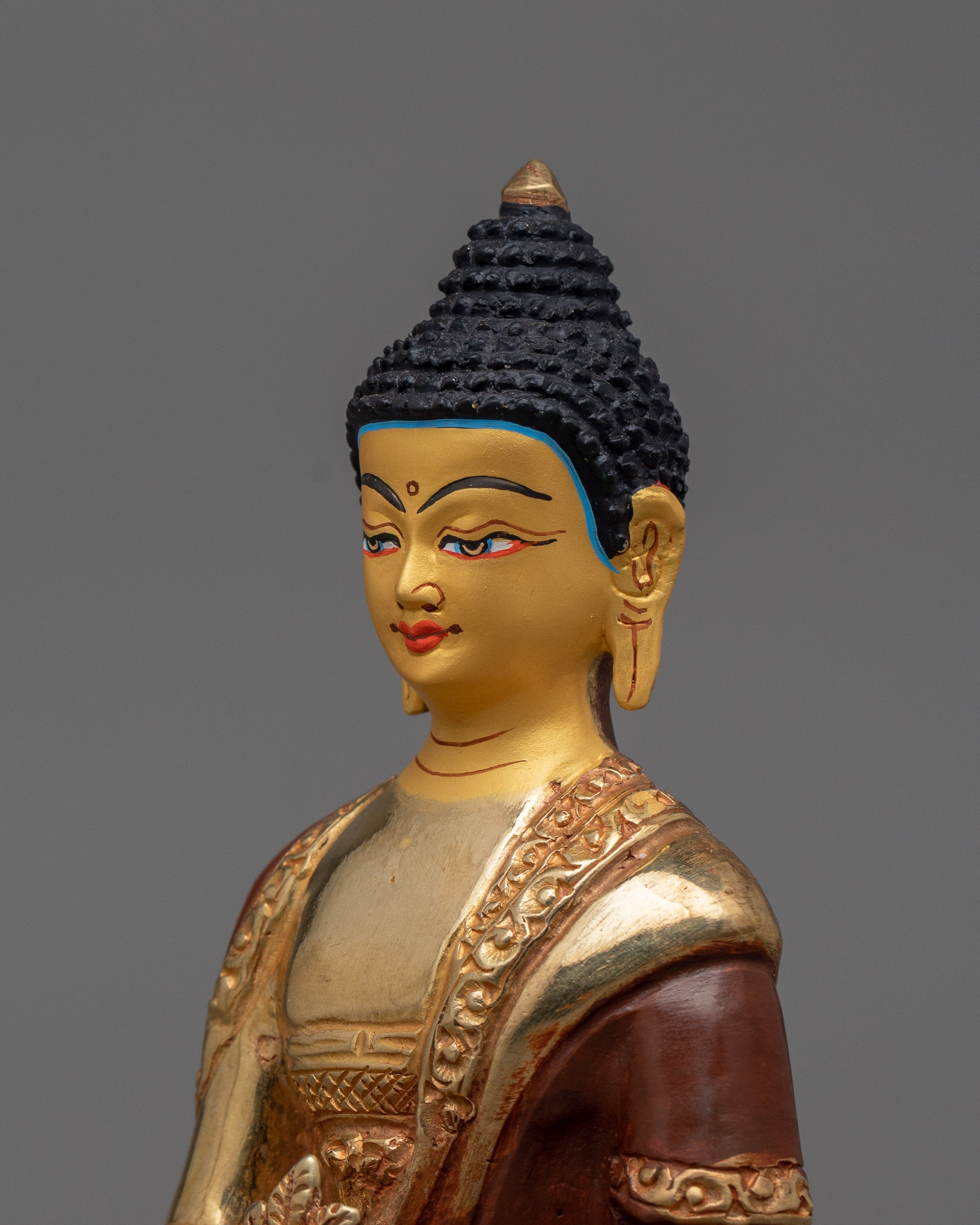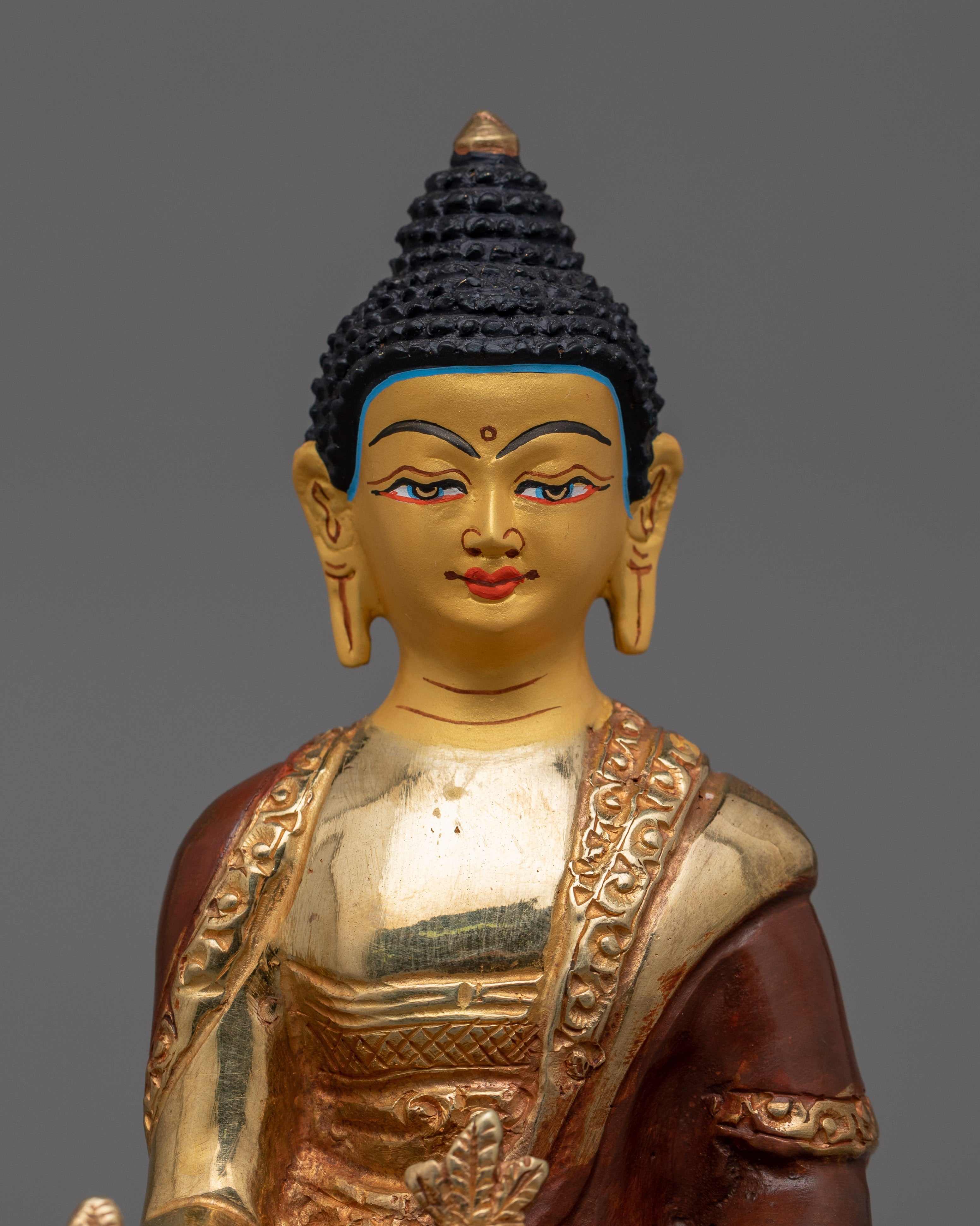 This handcrafted Healing God Medicine Buddha statue, made from pure copper with 24K gold gilded, embodies the Buddha of Healing and Medicine in Mahayana and Vajrayana Buddhism. This Statue is sitting at Size 6.1”/15.5cm (Height) x 3.9”/10cm (Base) Weight: 0.76 kg. This statue has an oxidized body too. Crafted by expert Nepalese artisans, this sacred item embodies the rich traditions of Himalayan Buddhism, making it an important addition to altars, meditation areas, or sacred collections.