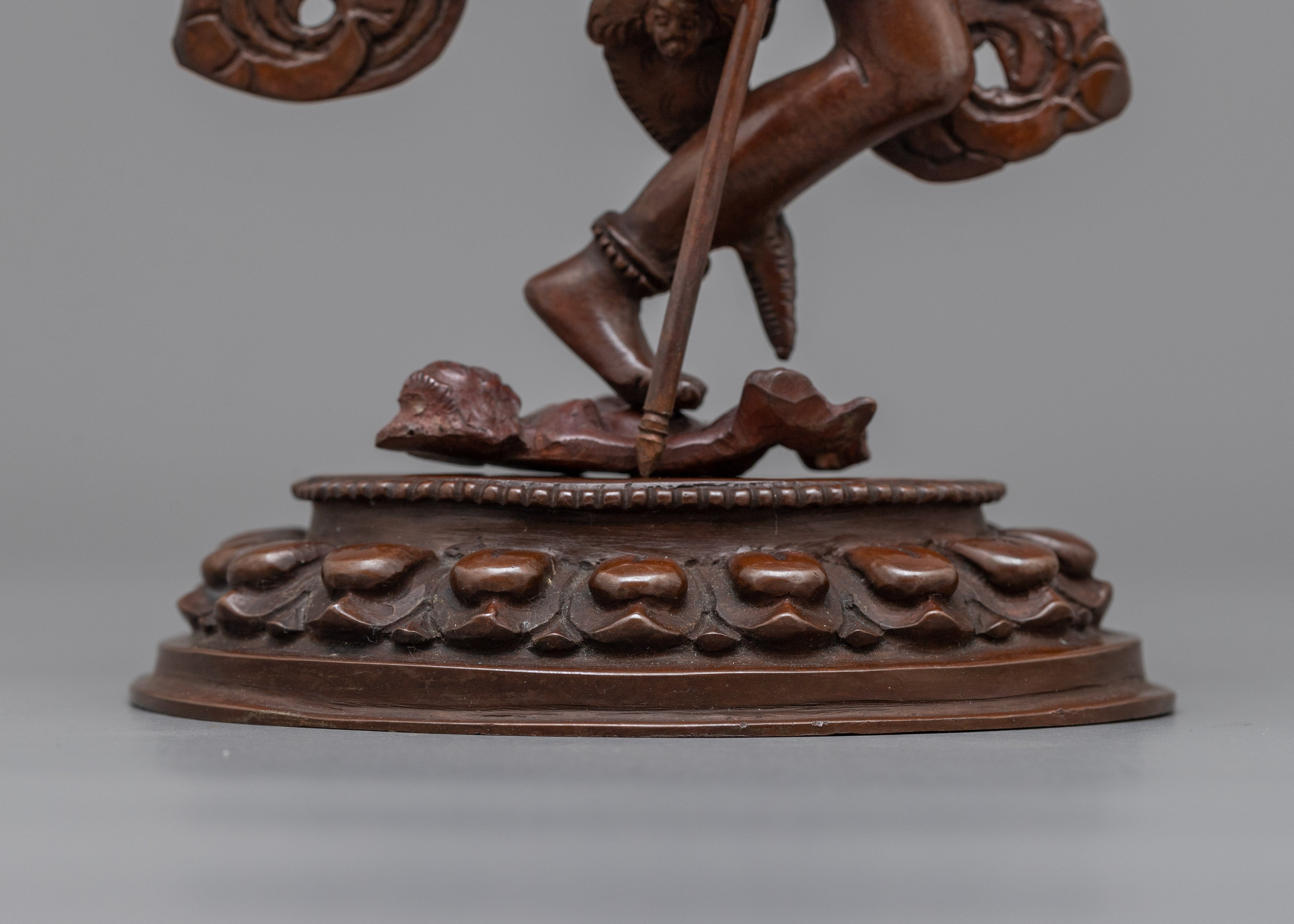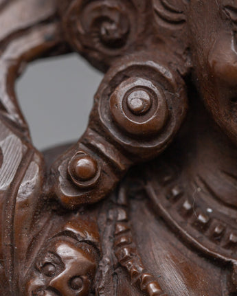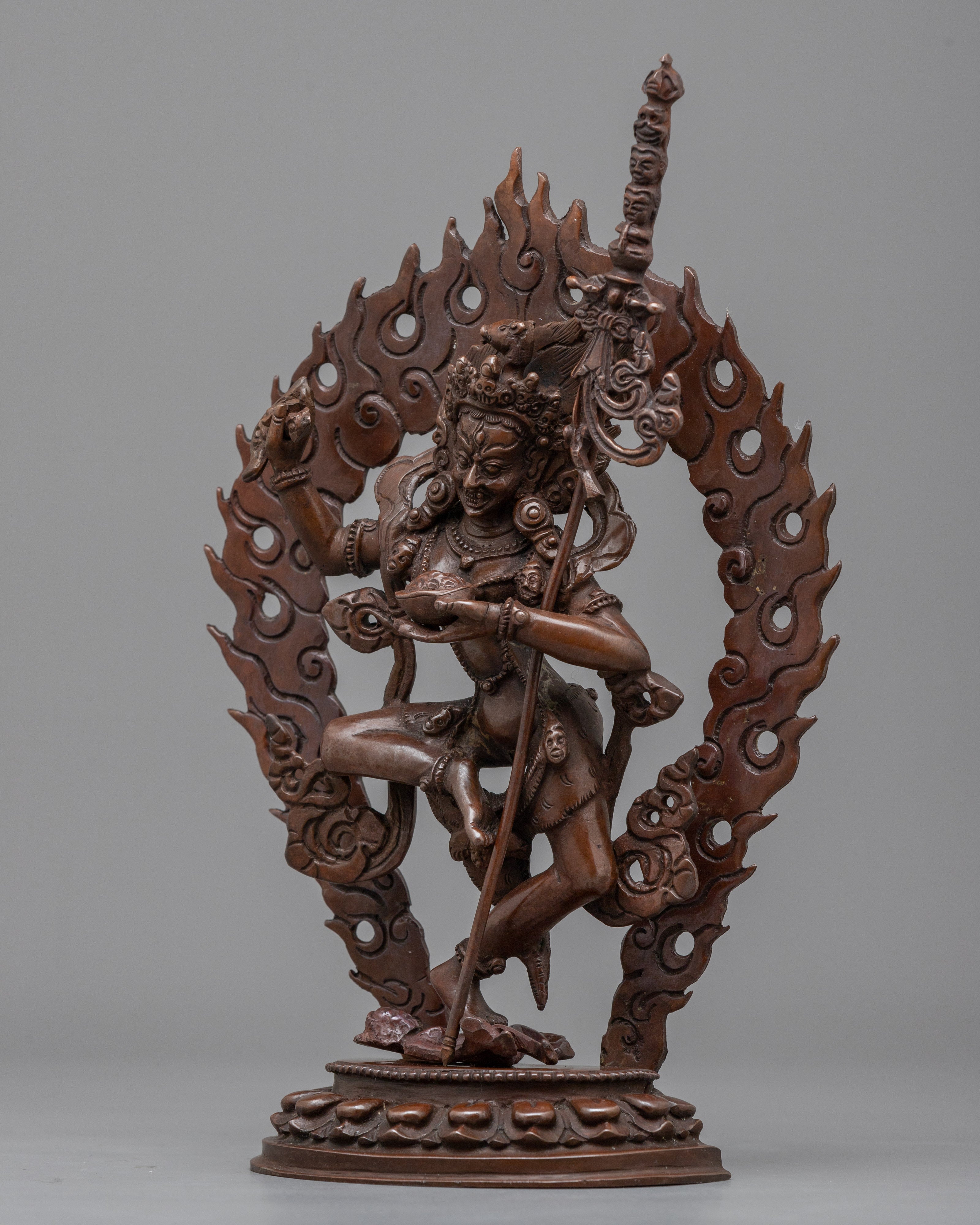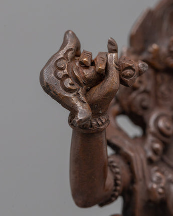 Introducing the heavenly presence of Heruka Vajravarahi, also known as Dorje Phagmo, into your sacred place with this beautiful statue. This work of art, which stands 9.4"/24 cm tall and weighs 1.16 kg, has an oxidized copper body that has been carefully crafted to represent the spirit of this venerated deity. The embodiment of sacred feminine energy, Vajravarahi exudes compassion and strength, beckoning you to surrender to her transformative presence.