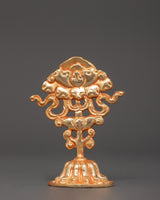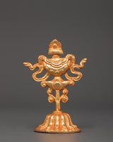 The Parasol, Golden Fish, Conch Shell, Endless Knot, Lotus, Victory Banner, Dharma Wheel, and Treasure Vase are the eight auspicious symbols in Buddhism, representing enlightenment, harmony, and spiritual wealth. These Buddhist ceremonial symbols are thought to bring blessings, protection, and positive energy into their surroundings. This Himalayan Buddhist Auspicious Symbol Set, which is often displayed on altars, temples, or in personal meditation places, is a potent reminder of the journey to wisdom and enlightenment. Its gold-plated copper craftsmanship ensures durability, elegance, and authenticity, making it an ideal spiritual gift or sacred home decor.