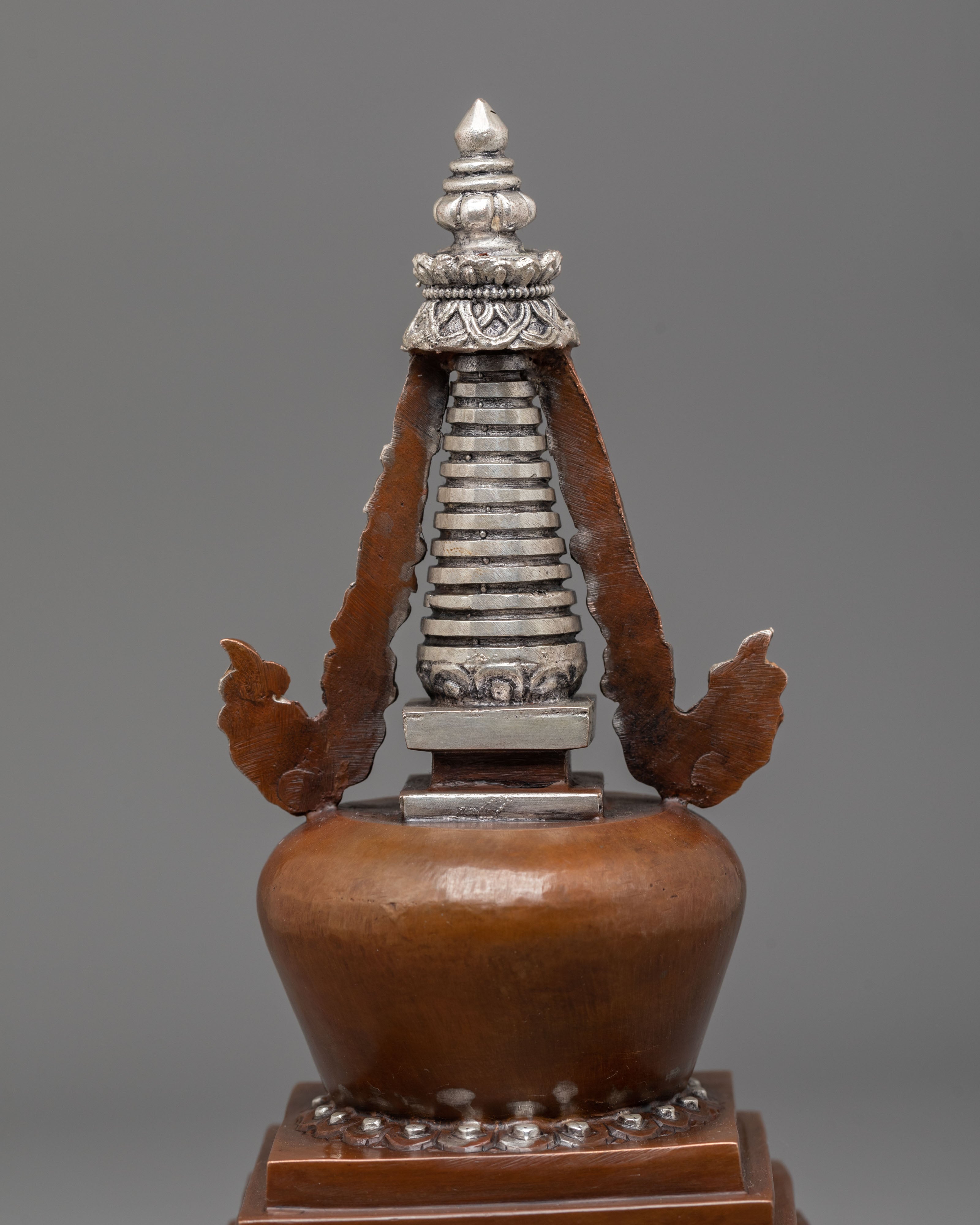 Oxidized Copper Himalayan Ritual Stupa | Sacred Tibetan Buddhist Shrine Art