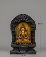 This Himalayan Handmade Sacred Amitayus Buddha statue The Buddha of Infinite Life, a metaphor of and eternal wisdom, is beautifully captured. It is precisely created utilizing stone dust epoxy binding and measures 27.5 cm in height and 18 cm in width. It weighs 2.21 kg. The beautiful pattern captures the spirit of Amitayus, whose benefits are thought to foster longevity, good health, and growth in faith. This statue is perfect for any house or place of worship because of its beautiful presence and its spiritual meaning.