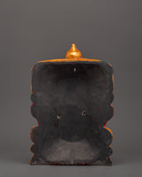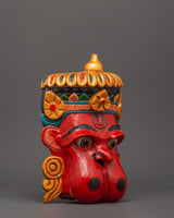 Hanuman, the monkey god and passionate devotee of Lord Rama represents strength, devotion, courage, and selfless service in Hindu mythology. The flaming red face symbolizes his undying determination and heavenly strength, while his wide, alert eyes reflect eternal alertness and intelligence. The magnificent crown, decorated with floral designs and gold accents, represents divine blessings and spiritual enlightenment. The enlarged ears and detailed workmanship symbolize his capacity to listen to believers' prayers and eliminate impediments.