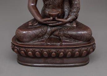 The deity presented in the statue is depicted seated on a moon disc atop a lotus throne holding an alms bowl with both hands. The art of crafting such statues has been passed down for centuries. One can use this statue for different practices including yoga and meditation practices. Receiving this statue for a practitioner like you will be an incredible present.