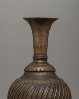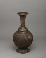 This metal flower vase exemplifies the Buddhist philosophy of simplicity and grace. Unlike overly ornate pieces, this vase exemplifies the purity and harmony inherent in traditional Buddhist artwork, where form and function merge flawlessly. The delicate grooves and simple workmanship contribute to its understated refinement, making it a symbol of contemplation and tranquillity. Vases are frequently used in Buddhist traditions to represent abundance and offerings to enlightened beings, as well as to carry blessings and devotion. This handcrafted beautiful flower vase is more than simply a piece of home décor; it is a sacred symbol of spiritual refinement and inner serenity.