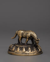 This Mini Brass Grazing Horse Statue is 4cm tall and 6cm wide and weighs about 0.12kg. Made of brass, the figurine represents a serene horse grazing on a textured base, conveying a sense of positioning and serenity. The statue highlights its appeal and provides uniqueness to any room.