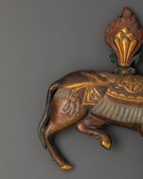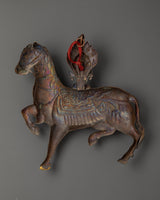 This magnificent Horse Wall Hanging, fashioned from oxidized copper and gold-plated metal, will add strength, grace, and movement to your home. This one-of-a-kind sculpture combines classic workmanship with rustic beauty, having been expertly hand-painted in acrylic hues. The exquisite artwork portrays the horse's spirit, representing freedom, power, and endurance, making it an ideal piece of spiritual animal wall art for any house, meditation room, or holy location. Whether you love horses or enjoy symbolic design, this wall hanging adds bright vitality and depth to your space.