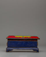 This handcrafted hardwood incense burner, 9 cm tall and 18 cm wide, is a lovely and practical addition to any spiritual area. Designed to accommodate your favorite incense sticks, it enhances the aroma and ambiance of your meditation room, altar, or sacred space. This burner is a one-of-a-kind piece of art, thanks to its intricate wooden craftsmanship and vibrant acrylic color pattern.