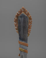 This Manjushree Sword, which stands 26 cm long and weighs 0.228 kg, is a striking relic in addition to being a potent spiritual tool. It is perfect for altars or ceremonial use because of its mix of polished copper and iron, which represents strength and purity. This sword honors Manjushree's everlasting teachings while encouraging practitioners to seek intellectual and spiritual clarity with its small yet powerful design.
