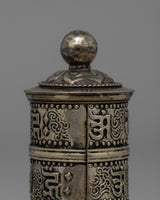 Designed as a meditation tool, spinning the wheel increases the spiritual worth of the decorated mantras, sending positivity and wisdom. Compact and lightweight (9.5 cm × 5.5 cm, 0.080 kg), it is ideal for personal devotion or as a significant decorative element. This prayer wheel brilliantly combines Buddhist teachings and superb craftsmanship.